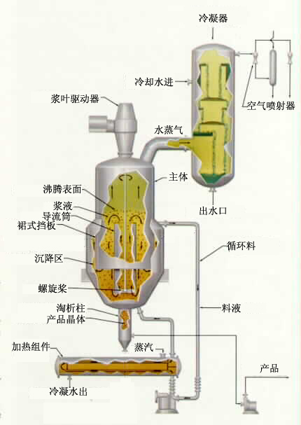 產(chǎn)品簡(jiǎn)介:DTB型真空蒸發(fā)結晶器 DTB蒸發(fā)結晶器(導流筒結晶器)是一種高效率的結晶設備,由PLC控制物料溫度,其獨特的結構和工作原理決定了它具有傳熱效率高、配置簡(jiǎn)單、操作控制方便、操作