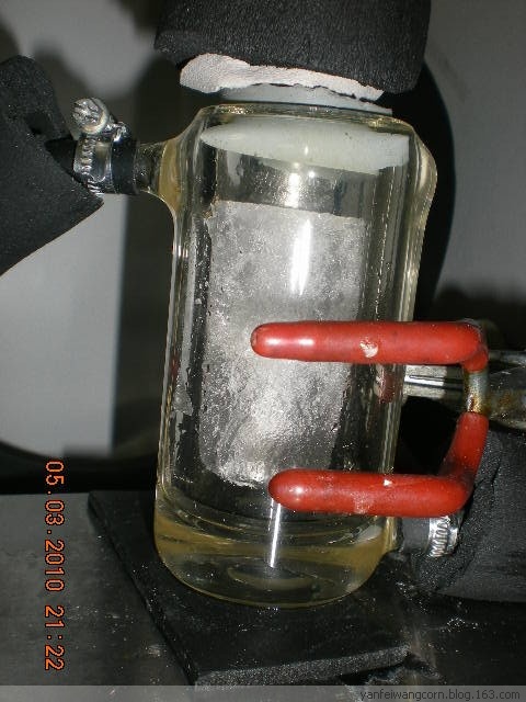 下圖就是cold finger形式的熔融結晶器,及發(fā)汗完的晶體圖片。