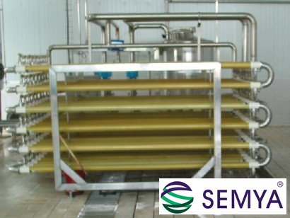 果漿經(jīng)過(guò)果漿加熱器,使果漿的溫度升溫到20-35度,以利于果漿酶分解和壓榨,提高出汁率。果漿加熱器的使用根據果漿的溫度而定。