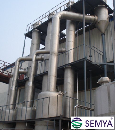 采用降膜蒸發(fā)裝置,將果汁中的水份進(jìn)行蒸發(fā)分離,冷凝水(即軟水)作為紅棗清洗用水或二榨萃取用水、超濾提糖用水,使果汁濃縮,糖度由9~18BX濃縮至70.3±0.2BRIX.