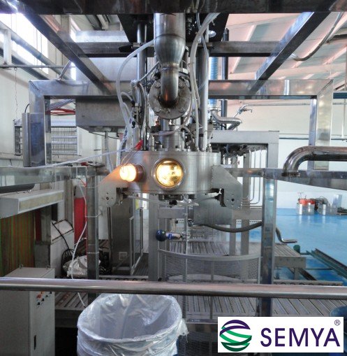 該工序采用FBR無(wú)菌灌裝機,濃縮果汁經(jīng)管道輸送至無(wú)菌灌裝機,利用灌裝機灌裝頭腔室溫度≥95℃的滅菌條件將果汁灌入無(wú)菌袋中(外圍為保護袋和鋼桶),灌裝重量通過(guò)質(zhì)量流量計來(lái)控制。