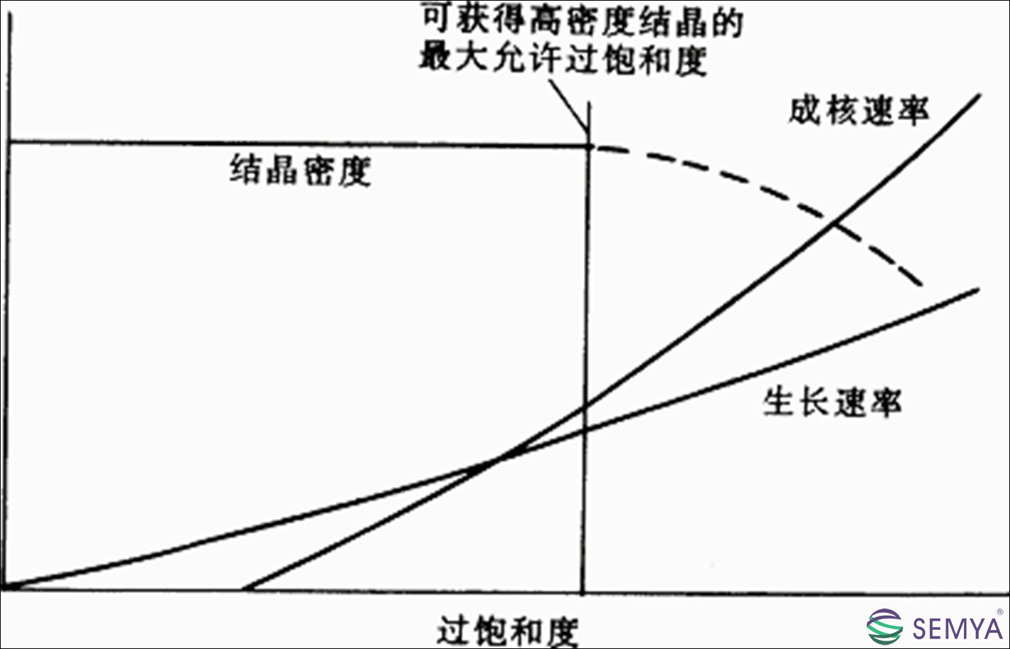 1.過(guò)飽和度 增大溶液過(guò)飽和度可提高成核速率和生長(cháng)速率,有利于提高結晶生產(chǎn)能力。